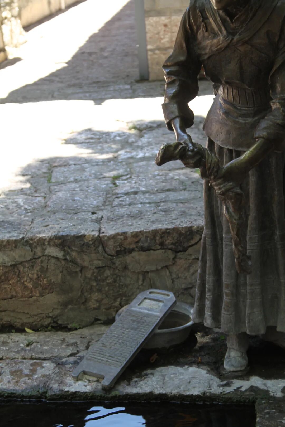 雕像旁,市民们也开始忙着浣洗,拖把、毛巾、衣物、蔬菜等,三眼井有严格的用水规矩,哪一口不能洗东西,哪一口可以洗什么,都有明确的公约,市民们按照用水公约,将衣物拿到最下方去清洗,动作娴熟又轻快,但轻声细语,生怕破坏了这静谧、柔软的时光。